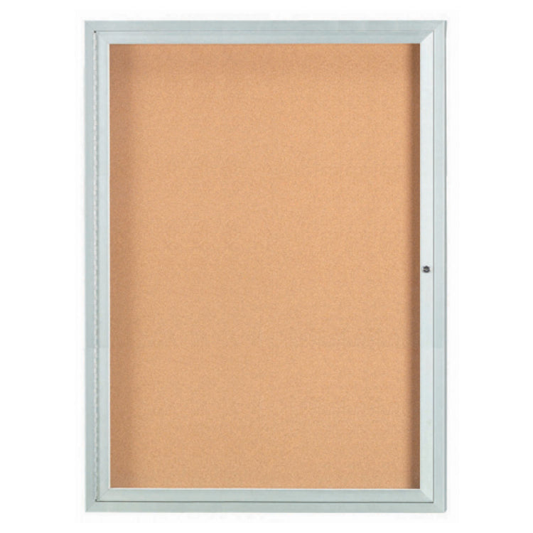 The Aarco DCC4836R Aluminum Bulletin Board is a meticulously designed enclosed display solution tailored for diverse professional settings. With dimensions of 36 inches in width and 48 inches in height, this bulletin board provides ample space for showcasing essential information securely and stylishly. Featuring a single door design, it ensures easy access while maintaining a sleek appearance. The board is constructed with a natural pebble grain cork back panel, which not only enhances its aesthetic appeal but also offers a practical surface for pinning notices, memos, and displays. The clear satin anodized finish lends a sophisticated touch, ensuring durability and resistance to wear over time. This bulletin board is ideal for use in educational institutions, corporate offices, and public facilities where organized and visible communication is key. The combination of its robust aluminum frame and the clear viewing surface makes it a reliable and attractive choice for environments that demand both functionality and style in their display fixtures. Whether used for informative displays or decorative presentations, the Aarco DCC4836R stands as an exemplary model in its category, providing an enduring solution for all your bulletin needs.