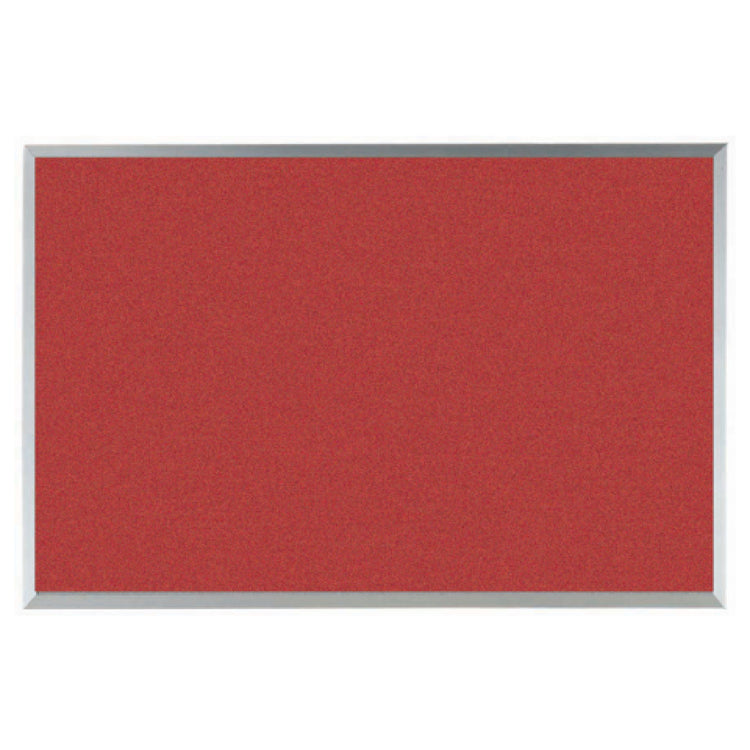 The Aarco DW2436210 VIC Cork Bulletin Board, with dimensions of 36"W x 24"H, is a versatile and practical solution for various communication needs. This wall-mountable board is framed with a clear satin anodized aluminum frame, ensuring both durability and a modern aesthetic appeal. The bulletin board surface is made of cork, providing a reliable area for pinning and displaying important notices, memos, and documents. The red salsa color of the cork surface adds a vibrant touch, making it suitable for dynamic work environments or educational settings where visual engagement is key. Ideal for offices, schools, or community centers, the Aarco DW2436210 VIC Cork Bulletin Board combines functionality with style, allowing for effective information dissemination and organizational efficiency. The board's sturdy construction, coupled with its eye-catching design, makes it a valuable addition to spaces that benefit from frequent updates and communications, ensuring that important information is always prominently displayed and easily accessible to all.