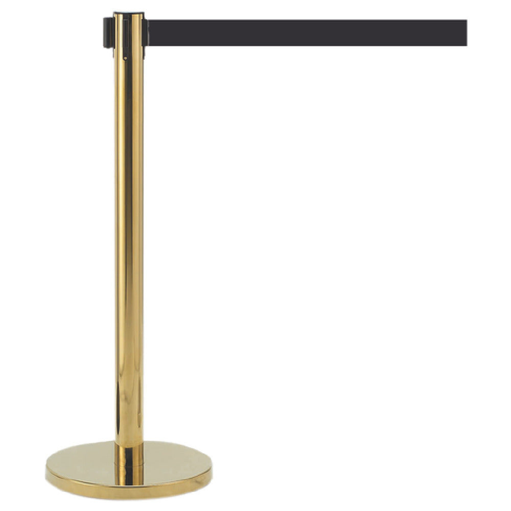 The Aarco HB-7BK Form-A-Line™ Crowd Control System 40"H Indoor Use is an expertly crafted solution for managing queues and maintaining order in various settings. This system features a 40-inch height and a 7-foot retractable black belt, providing a versatile and effective barrier for controlling foot traffic. The unit is designed for indoor use, making it ideal for environments such as banks, airports, and entertainment venues where crowd management is essential. The 30 lb base ensures stability, while the polished brass finish adds a touch of elegance to any interior space. This combination of functionality and style makes the Aarco HB-7BK a popular choice across different market segments, from corporate to event management industries. Additionally, the system is equipped with protective rubber floor guards, which safeguard flooring surfaces from potential damage and enhance the unit's durability. The Aarco HB-7BK Form-A-Line™ Crowd Control System represents a perfect blend of practicality, durability, and aesthetic appeal, catering to the needs of businesses seeking efficient and stylish crowd control solutions.
