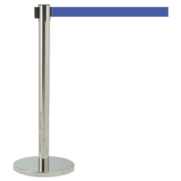The Aarco HC-10BL HC-10BL Form-A-Line™ System Retractable Belt Style is a robust and versatile solution designed for efficient and orderly crowd management. This system features a sleek chrome finish that not only enhances its visual appeal but also ensures durability and resistance against wear. It is equipped with a 40-inch high post that supports a blue retractable belt, providing both visibility and functionality in directing pedestrian traffic. The HC-10BL is engineered with a 30-pound base, offering stability and preventing accidental tipping, making it suitable for high-traffic areas. Additionally, the base includes protective rubber floor guards which safeguard floor surfaces from potential damage. This makes it an ideal choice for venues ranging from airports and banks to entertainment arenas and retail outlets, where crowd control and queue management are essential. The retractable belt system allows for easy and quick adjustments to the queue area, maximizing flexibility and efficiency. By incorporating these technical features, the Aarco HC-10BL offers a practical and stylish solution for any industry requiring reliable and effective pedestrian guidance systems.