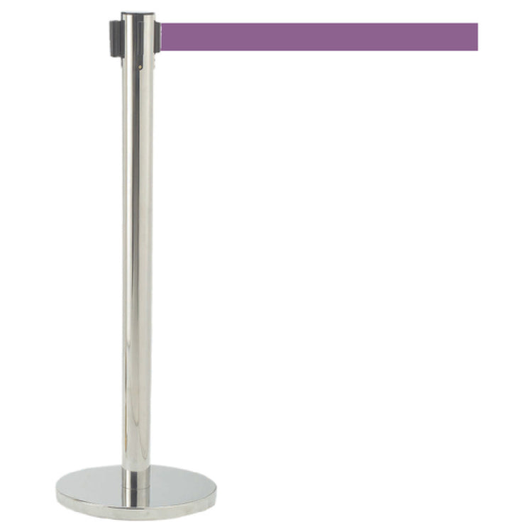 The Aarco HS-10PU HS-10PU Form-A-Line™ System Retractable Belt Style has a Satin Finish is a sophisticated queue management solution featuring a sleek satin finish that enhances any environment. This system includes a durable purple retractable belt that is designed for both functionality and aesthetic appeal. The base of the system weighs 30 pounds, providing a stable foundation to ensure safety and reliability in high-traffic areas. The Aarco HS-10PU stands at 40 inches high, making it a prominent and effective barrier for crowd control. Additionally, the system is equipped with protective rubber floor guards, which prevent damage to flooring surfaces and ensure the unit remains in place without slipping. This product is ideal for a variety of market segments, including retail, hospitality, and event management, offering a combination of style, durability, and practicality. The Aarco HS-10PU Form-A-Line™ System is a valuable addition to any setting that requires an efficient and visually appealing way to manage queues and guide guests, customers, or attendees.