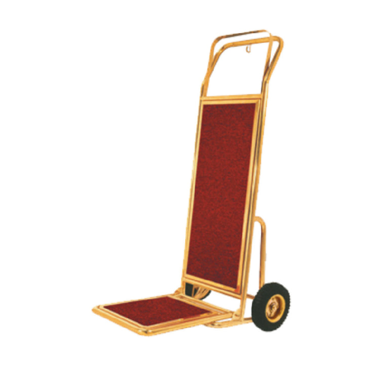The Aarco HT-2B Hand Truck is a versatile material handling solution, designed with precision to cater to various industry needs. Featuring a 15-inch width, 19-1/2-inch length, and 48-inch height, this hand truck is constructed with a durable 1-inch brass tubular frame, providing strength and stability for transporting goods. The inclusion of a red carpet enhances its aesthetic appeal while offering added protection for transported items. Equipped with 8-inch pneumatic wheels, the Aarco HT-2B ensures smooth maneuverability across diverse surfaces, making it suitable for both indoor and outdoor use. This hand truck combines functionality with a professional design, making it a valuable asset for businesses in retail, hospitality, and logistics sectors. Its robust construction and thoughtful design allow for efficient handling of various loads, making the Aarco HT-2B an essential tool for operations requiring reliable and effective transport solutions. Whether used in a warehouse setting or for upscale hotel services, the Aarco HT-2B Hand Truck exemplifies quality and practicality, fulfilling the transportation needs of different market segments with ease.