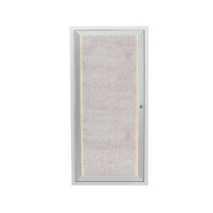 The Aarco LODCC2412R Bulletin Board 12"W X 24"H Enclosed is a versatile display solution designed for both indoor and outdoor environments. This bulletin board features a 12-inch wide by 24-inch high enclosure, providing ample space for showcasing important notices or information. It is crafted with a burlap weave vinyl surface, ensuring durability and a professional look. The board is encased in an aluminum frame with a clear satin anodized finish, offering both strength and aesthetic appeal. This model includes LED lights to enhance visibility of displayed content, making it effective in various lighting conditions. The bulletin board is equipped with an acrylic safety glass window and features a single lockable door with a continuous hinge, ensuring secure access to the enclosed materials. Its design includes mitered corners and a vented, weatherized rear surface with a thick rubber door seal, providing protection against the elements. The concealed mounting bracket allows for seamless installation, while the inclusion of a power cord ensures readiness for immediate use. The Aarco LODCC2412R is an ideal choice for businesses and educational institutions seeking a reliable and stylish solution for displaying information in a variety of settings.