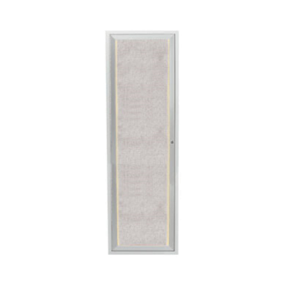 The Aarco LODCC3612R Bulletin Board 12"W X 36"H Enclosed is a meticulously designed communication tool that seamlessly integrates into both indoor and outdoor environments. This product features a burlap weave vinyl surface, offering a unique tactile experience, while the sleek aluminum frame provides durability and a modern aesthetic. Equipped with LED lights, it ensures content visibility under varying lighting conditions. The acrylic safety glass window enhances security and protects displayed materials, which can be accessed through a lockable door with a continuous hinge and thick rubber door seal, ensuring content remains intact and secure. The mitered corners and clear satin anodized finish add a refined touch to its structural integrity. The bulletin board is further enhanced with a vented, weatherized rear surface, making it resilient to the elements, and includes a concealed mounting bracket for discreet installation. The inclusion of a power cord facilitates easy connection to power sources, making it an efficient, ready-to-use choice for educational institutions, corporate environments, and public spaces alike. The Aarco LODCC3612R is a versatile, reliable bulletin board offering optimal functionality and security, tailored to meet the diverse needs of modern informational display requirements.
