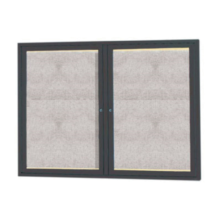 The Aarco LODCC3648RBA Bulletin Board 48"W X 36"H Enclosed is a meticulously crafted display solution suitable for a variety of environments, both indoor and outdoor. Featuring a burlap weave vinyl surface, it provides a visually appealing backdrop for notices, announcements, and information. The board is encased in an aluminum frame with a bronze finish, ensuring durability and a sleek appearance. Equipped with LED lights, this bulletin board enhances visibility in any setting. It includes two doors made from acrylic safety glass, offering a clear view of the contents while ensuring safety. These doors are lockable, providing security for displayed materials. The continuous hinge and mitered corners contribute to the board’s robust structure, while the vented, weatherized rear surface and thick rubber door seal offer protection against the elements. Concealed mounting brackets ensure a clean installation, and the included power cord facilitates easy connectivity to a power source. This bulletin board is an ideal choice for educational institutions, corporate offices, and community centers seeking a reliable and stylish means of communication. Its versatile design and quality construction underline its value as an essential communication tool across diverse market segments.