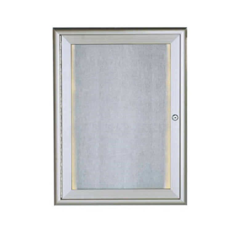 The Aarco LOWFC2418 Waterfall Bulletin Board is an enclosed display solution measuring 18 inches in width and 24 inches in height, tailored for both indoor and outdoor environments. Its contemporary design is highlighted by a burlap weave vinyl surface that provides a sophisticated backdrop for announcements and displays. Encased in a durable aluminum frame with a clear anodized finish, this bulletin board is equipped with clear acrylic safety glass, ensuring visibility and protection for the displayed content. The board features full-length hinges and a lockable mechanism, offering both security and ease of use. An integrated LED lighting system, complete with a power cord, enhances visibility, making it ideal for dimly lit areas. The bulletin board's concealed mounting brackets allow for seamless installation, preserving the aesthetic integrity of the surrounding environment. The Aarco LOWFC2418 is a versatile choice for educational institutions, corporate offices, and public spaces, providing a reliable and secure method for displaying essential information while maintaining a contemporary and professional appearance. Its robust construction and thoughtful design make it a valued asset across various industries, supporting efficient communication and information dissemination.