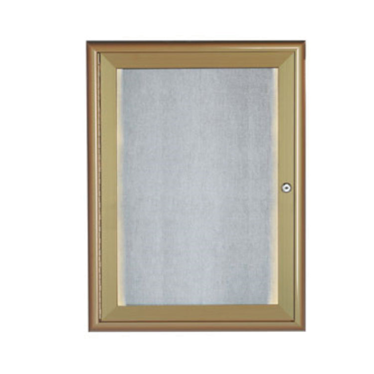 The Aarco LOWFC2418LB Waterfall Bulletin Board is an enclosed display solution measuring 18 inches in width and 24 inches in height, tailored for both indoor and outdoor applications. Featuring a contemporary design, this bulletin board boasts a burlap weave vinyl surface that adds a touch of elegance and durability. Encased within a sturdy aluminum frame, the board is protected by clear acrylic safety glass, which ensures visibility while safeguarding the contents. Full-length hinges contribute to its robust structure, while its lockable feature provides security for posted materials. The inclusion of LED lighting enhances visibility and presentation, with a power cord included for convenience. Concealed mounting brackets ensure a clean installation, maintaining the aesthetic appeal. Finished in an antique brass, this bulletin board seamlessly blends with various interior and exterior settings. Its versatile design caters to different market segments, offering a reliable and stylish solution for businesses, educational institutions, and community centers seeking to display information securely and attractively.