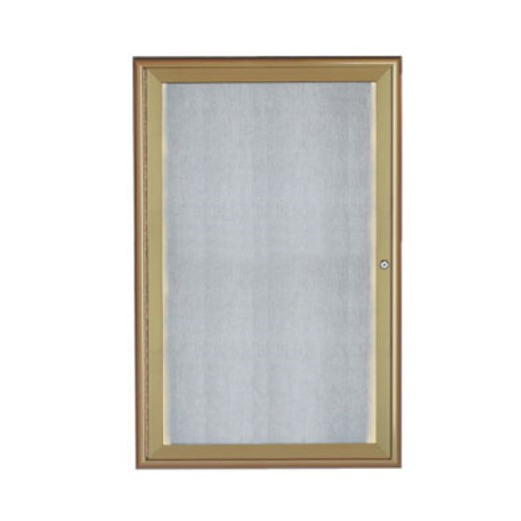 The Aarco LOWFC3624LB Waterfall Bulletin Board is a versatile display solution, measuring 24"W x 36"H, suitable for both indoor and outdoor environments. This enclosed bulletin board is crafted with a contemporary design, featuring a burlap weave vinyl surface that combines aesthetic appeal with functionality. The aluminum frame provides durability, while the clear acrylic safety glass ensures enhanced visibility and protection for displayed content. The structure incorporates full-length hinges and a lockable design, offering secure access and maintenance convenience. Integrated LED lighting enhances visibility, and the product is equipped with a power cord for easy installation. Concealed mounting brackets provide a seamless and secure attachment to various surfaces. The elegant antique brass finish adds a touch of sophistication, making it a fitting choice for a wide range of professional settings, from corporate offices to educational institutions. This bulletin board's combination of secure enclosure, lighting, and durable construction delivers a unique value proposition, catering to diverse market segments requiring reliable and stylish display solutions.