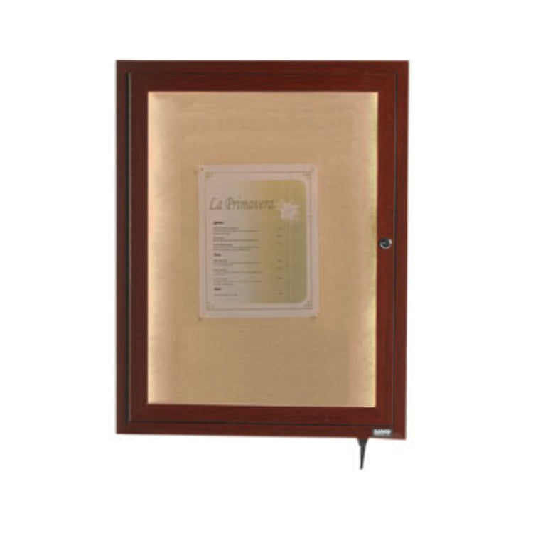 The Aarco LWL2418W Display Case 18"W X 24"H Enclosed is a meticulously designed unit suited for a range of professional settings, including retail displays and educational environments. Featuring an 18-inch width and a 24-inch height, this display case is crafted with a burlap weave vinyl surface complemented by a wood-like aluminum frame, delivering both elegance and durability. Its enclosed structure includes a lockable single door equipped with a continuous hinge for seamless opening and closing, supported by a thick rubber door seal that ensures a secure environment for the contents. Enhanced by LED lighting, the display case ensures optimal visibility of displayed items through its acrylic safety glass window, which combines clarity with impact resistance. Designed for versatility, it boasts a weatherized real surface and a concealed mounting bracket, making it suitable for both indoor and outdoor use. The walnut finish adds a touch of sophistication, while a vented design aids in maintaining an appropriate internal environment. Additionally, the display case is equipped with a power cord for easy electrical connectivity. The Aarco LWL2418W is an exceptional choice for showcasing valuable items securely and attractively, appealing to various market segments from commercial to institutional use.