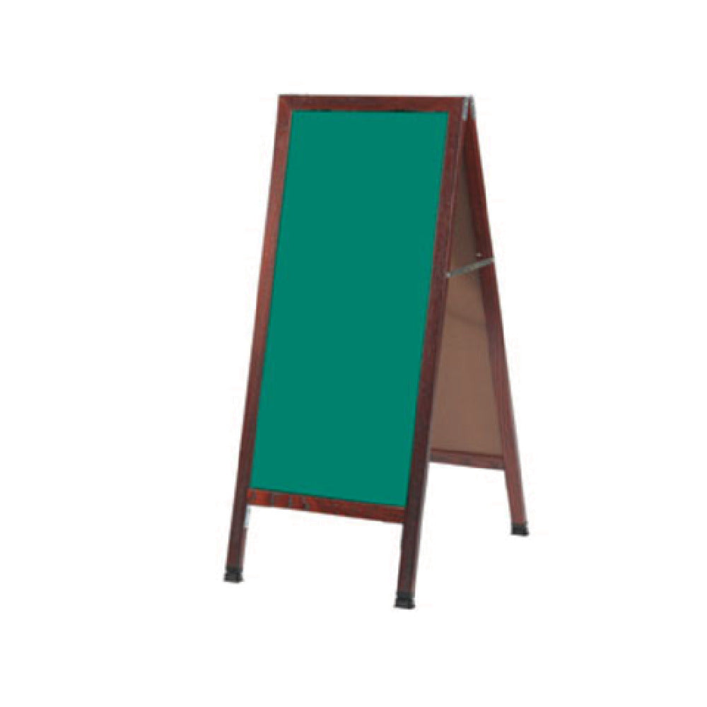 The Aarco MA-3G Sidewalk Chalkboard is a versatile and durable signage solution, featuring an 18-inch wide by 42-inch high green composition board that provides ample space for vibrant and clear messaging. It is constructed with a solid oak A-frame for robust support and aesthetic appeal. The board is reinforced with steel corners, ensuring longevity and resilience against wear and tear, while the full-length piano hinges offer smooth and stable operation. Equipped with two locking folding hinges, this chalkboard is designed for secure and convenient placement, making it suitable for various settings such as cafés, retail stores, and educational institutions. The weather-resistant hardware enables outdoor usage, withstanding different environmental conditions without compromising on performance or appearance. The inclusion of a plastic camel foot floor leveler ensures stability on uneven surfaces, enhancing its utility across diverse locations. Finished with a cherry lacquer, this sidewalk chalkboard exudes a sophisticated and professional look, making it an attractive addition to any establishment seeking to engage customers and passersby effectively.