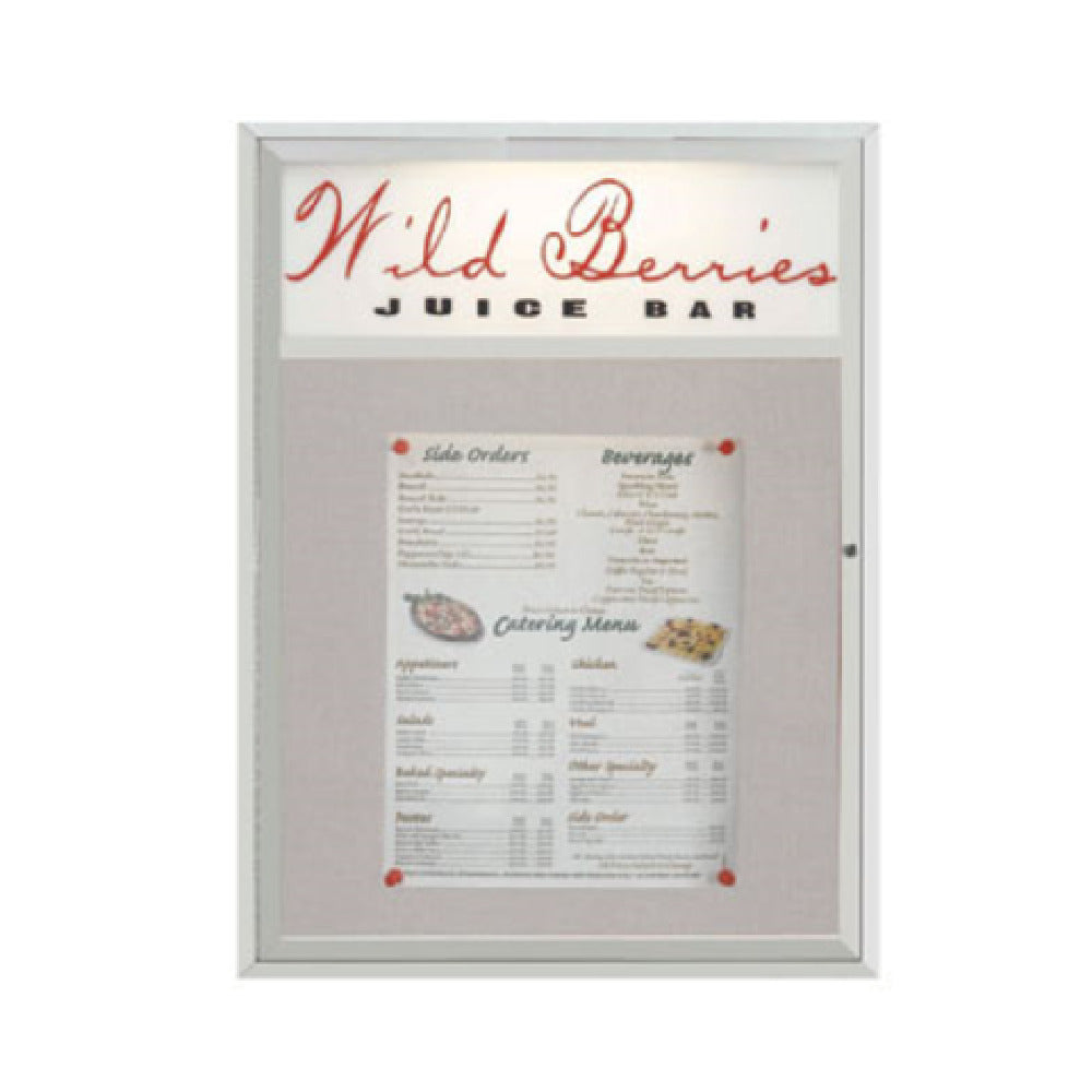 The Aarco MSC4836H Main Street Bulletin Board is a versatile and durable solution for displaying information in both indoor and outdoor settings. Measuring 36" wide by 48" high, this enclosed bulletin board features a robust burlap weave vinyl surface that is both durable and visually appealing. Encased in a sturdy aluminum frame with a satin anodized finish, it is designed to withstand various environments while maintaining a sleek appearance. The translucent header provides an additional space for branding or titling purposes, making it ideal for a variety of settings such as schools, offices, or community centers. The integrated florescent overhead lighting ensures that posters and announcements are clearly visible, even in low-light conditions. Security is ensured with a flat key lock, keeping the contents secure from unauthorized access. Installation is made easy with the included mounting hanger, allowing for quick and efficient setup. Additionally, the bulletin board comes with a color graphic to enhance its visual appeal. This product is designed with practicality and aesthetics in mind, catering to different segment markets by offering a reliable and attractive platform for information dissemination. The Aarco MSC4836H is an excellent choice for those seeking a quality bulletin board that combines functionality with sophisticated design.
