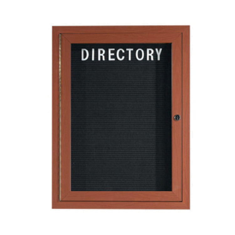 The Aarco OADCO3624RL Directory Board 24"W X 36"H Enclosed Face is a meticulously crafted communication tool designed for both indoor and outdoor environments. Featuring an extruded aluminum frame, this directory board is durable and lightweight, ensuring longevity and ease of installation. The enclosure comes with a single door, offering a sleek and secure display of information. Included with the board is a set of 3/4" Helvetica letters and an assortment tray, allowing for versatile and clear messaging. The oak powder-coated finish adds an elegant touch, making it a suitable choice for a variety of settings, from corporate offices to educational institutions. This directory board is ideal for businesses and organizations looking to present information in a professional and organized manner. Its size of 24 inches by 36 inches provides ample space for displaying important details, while the enclosed face protects against environmental factors. The Aarco OADCO3624RL is a reliable solution for those seeking an effective and aesthetically pleasing method to communicate with clients, employees, or visitors, ensuring messages are conveyed with clarity and style.