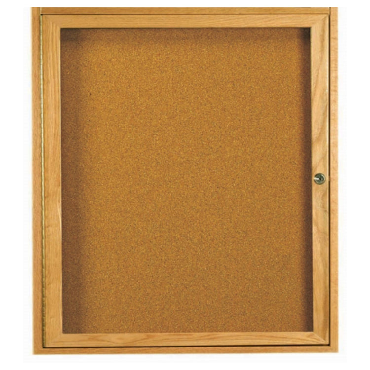 The Aarco OBC3630R Red Oak Bulletin Board is an enclosed display unit measuring 30"W x 36"H, designed to cater to diverse industry needs with its unique combination of functionality and aesthetic appeal. This bulletin board features a single door, providing easy access to the display area while ensuring content protection. The hairline miters at the corners contribute to its sleek and professional appearance, making it suitable for both corporate and educational environments. The natural pebble grain cork back panel offers a reliable and durable surface for pinning notices, announcements, or educational materials, enhancing communication efficiency in any setting. Its high gloss clear lacquer finish not only adds a touch of elegance but also offers protection against wear and tear, ensuring longevity. With its robust construction and attention to detail, the Aarco OBC3630R stands out as a versatile solution for showcasing important information in offices, schools, and public spaces, blending seamlessly with various interior designs while maintaining high standards of functionality and durability.