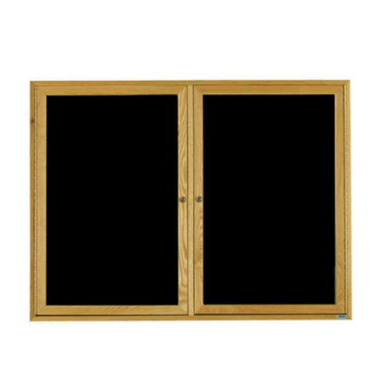The Aarco ODC3648L Message Center Board 48"W x 36"H Enclosed Face is a meticulously designed communication tool, ideal for various professional environments requiring organization and display of information. This message center board is constructed with a high-quality solid North American red oak frame, featuring mitered and fastened corners for enhanced durability. Its enclosed face houses a black felt panel, perfect for securely attaching messages and notices. The unit includes two doors, allowing easy access and updating of the displayed content while ensuring that the information remains protected from unauthorized handling or environmental factors. A highlight of the Aarco ODC3648L is the inclusion of a set of 3/4" Helvetica letters and an assortment tray, providing users with a versatile means to customize and organize their message display effectively. The board is finished with a high-gloss clear lacquer, offering a polished appearance that complements any setting while also providing a protective layer to the wood. This message center board is particularly valuable for educational institutions, commercial offices, and community centers, offering a practical solution for displaying important information in a professional and organized manner.