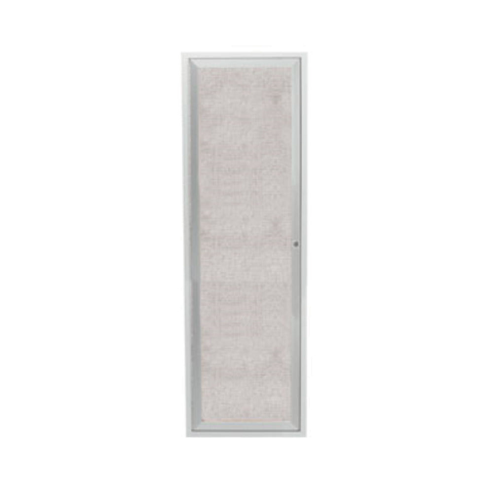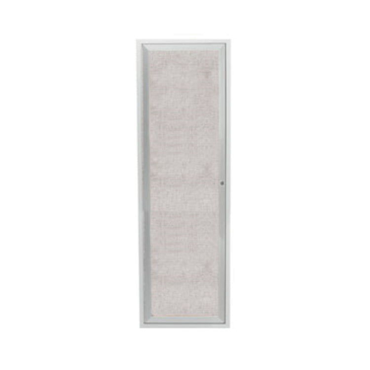 The Aarco ODCC3612R Bulletin Board 12"W X 36"H Enclosed is an expertly engineered product tailored for diverse environments where information display requires both visibility and protection. Measuring 12 inches in width and 36 inches in height, this bulletin board is perfect for spaces that necessitate vertical display solutions. It features a burlap weave vinyl surface, providing a distinctive texture that enhances visual appeal while supporting effective communication. Encased within a sturdy aluminum frame, the board boasts an acrylic safety glass window that ensures clear visibility while safeguarding contents from environmental factors. The design includes a single lockable door with a continuous hinge, offering both security and ease of access. Mitered corners add a refined finish, while the vented weatherized rear surface underscores its suitability for both indoor and outdoor use. The inclusion of a thick rubber door seal further enhances its resilience against the elements. Additionally, a concealed mounting bracket ensures seamless installation and a clean appearance. Finished with a clear satin anodized coat, the Aarco ODCC3612R stands as a robust and reliable choice for businesses, educational institutions, and community centers seeking a durable and stylish solution for bulletin needs.