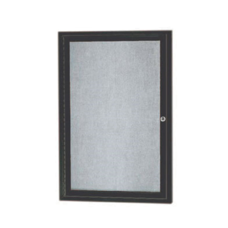 The Aarco ODCC3624RBA Bulletin Board 24"W X 36"H Enclosed is a versatile and robust communication tool designed for both indoor and outdoor applications. This bulletin board features a distinctive burlap weave vinyl surface encased within a sleek aluminum frame, providing a durable and aesthetically pleasing display area. The acrylic safety glass window offers clear visibility while ensuring the contents are protected. Its lockable single door, equipped with a continuous hinge and a thick rubber door seal, enhances security and durability, making it suitable for various environments. The mitered corners and concealed mounting bracket add to its streamlined appearance, ensuring it can be seamlessly integrated into any setting. Designed to withstand the elements, the board is vented and has a weatherized rear surface, further extending its applicability to outdoor use. The bronze finish complements its functional design, making it both a practical and stylish choice for educational institutions, corporate offices, and community centers. The Aarco ODCC3624RBA Bulletin Board is ideal for organizations needing a reliable and secure way to display information, announcements, or advertisements, reflecting both functionality and elegance in its construction and design.