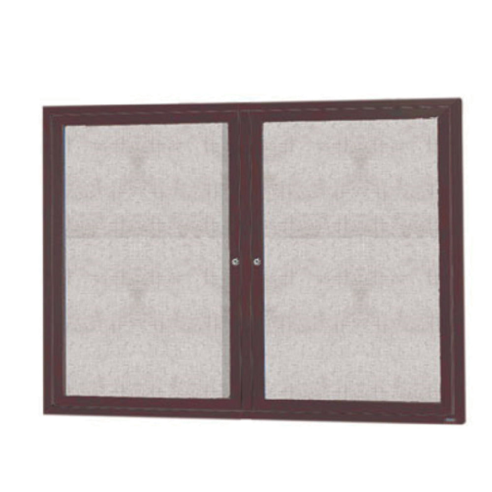 The Aarco ODCC3648RBA Bulletin Board is a versatile and secure display solution measuring 48 inches wide by 36 inches high, designed for both indoor and outdoor use. It features a burlap weave vinyl surface that provides a stylish and durable backdrop for notices and documents. The board is enclosed within an aluminum frame, adding to its durability and aesthetic appeal, while the acrylic safety glass window ensures clear visibility of the enclosed materials. This model includes two lockable doors, providing additional security for the contents. The continuous hinge and mitered corners enhance the structural integrity and longevity of the enclosure. The bulletin board is vented with a weatherized rear surface and a thick rubber door seal, ensuring protection against environmental elements. Concealed mounting brackets offer a clean and sleek installation, maintaining the board's professional appearance. The bronze finish adds a touch of sophistication, making it suitable for various environments, from corporate offices to educational institutions or community centers seeking reliable display solutions. Its practical design and robust construction make the Aarco ODCC3648RBA Bulletin Board an excellent choice for organizations requiring a combination of security, durability, and elegance in their display boards.