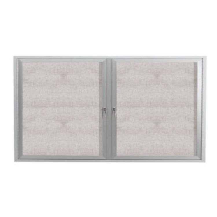 The Aarco ODCC3660R Bulletin Board 60"W X 36"H Enclosed is a highly functional and versatile bulletin board designed to meet various indoor and outdoor communication needs. Featuring a burlap weave vinyl surface, this board provides a robust and stylish display area, perfect for educational institutions, corporate environments, and public spaces. The aluminum frame enhances durability, while the acrylic safety glass window ensures clear visibility and added safety. This bulletin board is equipped with two lockable doors, providing secure access and content protection. The continuous hinge and mitered corners contribute to its sleek design and stability. The vented, weatherized rear surface and thick rubber door seal protect against environmental elements, making it suitable for outdoor use. A concealed mounting bracket facilitates easy and secure installation. The clear satin anodized finish offers a contemporary look that complements any setting. Overall, the Aarco ODCC3660R Bulletin Board combines practicality and durability, providing an effective solution for displaying important information in various settings.