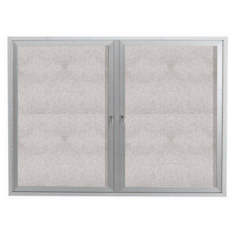 The Aarco ODCC4860RI Aluminum Bulletin Board 60"W X 48"H Enclosed is a premium display solution designed for outdoor use, equipped with two durable doors for secure access and maintenance. With a dimension of 60 inches in width and 48 inches in height, this bulletin board provides ample space for displaying information, making it highly suitable for educational institutions, corporate environments, and community centers. The enclosure is illuminated, ensuring visibility even in low-light conditions, a critical feature for outdoor applications. The board's burlap weave vinyl back panel offers a sophisticated and tactile surface for pinning notices, while its clear satin anodized aluminum finish adds a sleek and modern aesthetic. This robust construction ensures long-lasting performance against the elements, catering to environments where durability is essential. The Aarco ODCC4860RI's design is both functional and visually appealing, aligning perfectly with the needs of businesses and organizations seeking a reliable outdoor communication tool. Its utility extends to various market segments, including educational facilities, where clear and accessible messaging is a priority, as well as public areas requiring durable and weather-resistant signage solutions. This bulletin board stands as an exceptional choice for those requiring a balance of style, functionality, and resilience in their display needs.