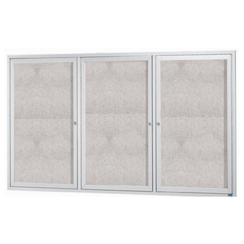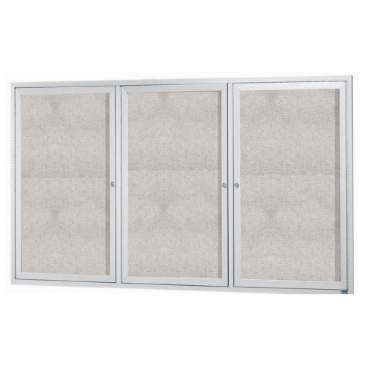 The Aarco ODCC4872-3R Aluminum Bulletin Board - 72"W x 48"H enclosed is a meticulously designed communication tool, ideal for both indoor and outdoor environments where information display is paramount. This bulletin board features a substantial size of 72 inches in width by 48 inches in height, making it suitable for high-visibility announcements and notices. Encased within a durable aluminum frame, it boasts a clear satin anodized finish that provides a sleek, professional look while ensuring durability against the elements. The enclosure includes three doors, each allowing easy access to the display area while maintaining the security of enclosed documents. Its burlap weave vinyl back panel enhances the aesthetic while providing a resilient surface for pinning. This board is specifically designed for outdoor use, making it highly versatile for educational institutions, corporate settings, and community centers that require reliable, weather-resistant information displays. The combination of high-quality materials and functional design makes the Aarco ODCC4872-3R a valuable asset in any environment where clear and secure presentation of information is critical.