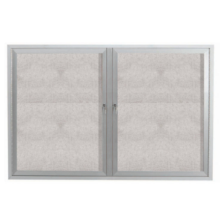 The Aarco ODCC4872R Aluminum Bulletin Board 72"W x 48"H Enclosed is a distinguished display solution designed to cater to various needs within educational, corporate, and public environments. Featuring an extensive measurement of 72 inches in width and 48 inches in height, this bulletin board provides ample display space, making it suitable for large-scale presentations or announcements. The unit is enclosed with two doors, ensuring the protection and security of displayed materials against unauthorized access and environmental conditions, thus ideal for outdoor settings. The burlap weave vinyl back panel offers a stylish and durable backdrop that enhances visibility and maintains the aesthetic appeal of posted materials. Constructed with a clear satin anodized finish, the bulletin board boasts a sleek and professional appearance while ensuring resistance to weather elements and corrosion. Its robust aluminum frame contributes to the overall lightweight yet sturdy construction, allowing for ease of installation and longevity. This bulletin board aligns with the needs of institutions seeking reliable and secure outdoor display options, combining practicality with refined design to meet the diverse demands of various sectors.