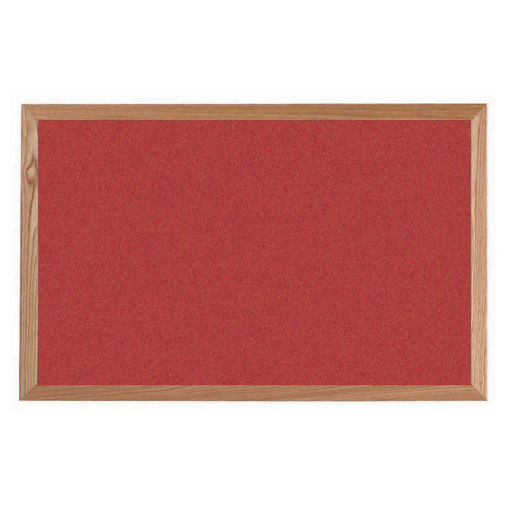 The Aarco OW2436210 VIC Cork Bulletin Board is a versatile communication tool measuring 36 inches in width and 24 inches in height, designed for efficient wall mounting. With its red oak frame, this bulletin board not only adds a touch of elegance to any professional setting but also ensures durability and stability. The frame is finished with a clear lacquer, enhancing its aesthetic appeal while protecting it from wear and tear. This model is characterized by a vibrant 'red salsa' cork surface, which provides a striking backdrop for memos, notices, and other important documents. The cork material is resilient and self-healing, accommodating multiple uses over time while maintaining its appearance. Ideal for offices, schools, and community centers, the Aarco OW2436210 VIC Cork Bulletin Board serves various market segments by facilitating dynamic communication and organization. It excels in environments where information sharing and visibility are crucial, offering a reliable and attractive solution for displaying a wide range of content. Whether used for pinning schedules in an educational setting or showcasing announcements in a corporate office, this bulletin board's practical dimensions and robust construction make it a valuable addition to any workspace.