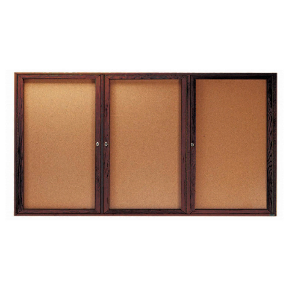 The Aarco WBC4896-3R Red Oak Bulletin Board is a substantial display solution, measuring 96 inches in width by 48 inches in height, and designed for enclosed use with three doors. This robust bulletin board is expertly crafted with hairline miters at the corners, ensuring both durability and precision in its construction. The natural pebble grain cork back panel provides a sturdy and reliable surface for pinning, while the walnut-stained finish adds a touch of elegance, making it a versatile choice for various settings. Its enclosed design helps protect displayed materials from the elements, making it ideal for educational institutions, corporate offices, or public venues that require effective communication tools. The red oak frame not only enhances its aesthetic appeal but also ensures longevity, meeting the needs of businesses looking for reliable and stylish information display solutions. Whether used for educational purposes in schools, information dissemination in corporate environments, or public announcements in community centers, the Aarco WBC4896-3R bulletin board stands out as a premium option, providing both form and function for diverse market segments within the industry.