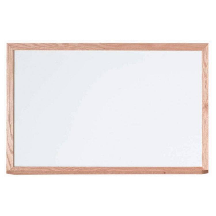 The Aarco WOS2436 White Porcelain Markerboard is a versatile tool designed for efficiency and clarity, measuring 36 inches in width and 24 inches in height, making it suitable for various spaces. Its wall-mount design ensures that the markerboard can be prominently displayed in classrooms, offices, or home study areas, providing an organized solution for presentations or note-taking. The white porcelain surface is engineered for durability, allowing for easy writing and erasing, which is ideal for environments that require frequent updates to the displayed information. Encased in a red oak frame, this markerboard combines functionality with aesthetic appeal, complementing both traditional and modern interiors. The steel back adds to its structural integrity, ensuring that the board remains a reliable tool over time. Whether utilized in educational settings, corporate environments, or personal spaces, the Aarco WOS2436 White Porcelain Markerboard offers a practical and professional solution for communication and collaboration needs, enhanced by its robust materials and thoughtful design.
