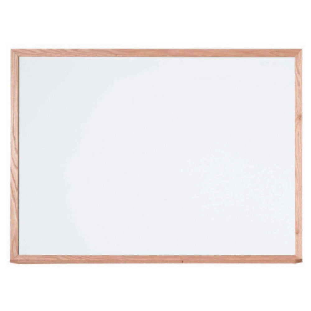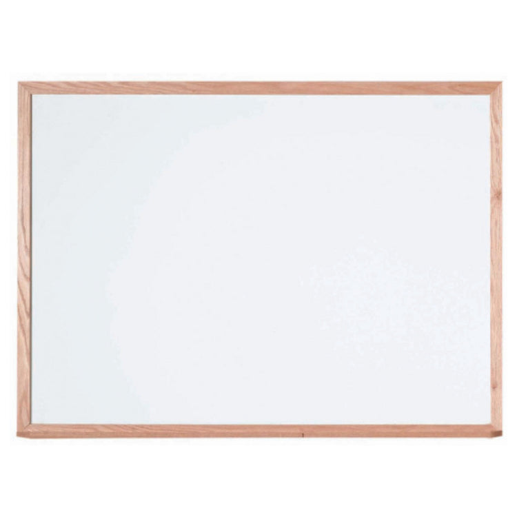 The Aarco WOS3648 White Porcelain Markerboard - wall mount - 48"W x 36"H is a premium choice for educational, corporate, and creative environments requiring a reliable and long-lasting writing surface. Featuring a sleek red oak frame, this markerboard combines aesthetics with functionality, providing a sophisticated addition to any room decor. The porcelain surface is highly durable, resistant to ghosting and staining, which ensures a pristine writing experience over time, making it an ideal tool for classrooms, boardrooms, and collaborative spaces. Backed by a robust steel structure, this markerboard guarantees stability and strength, ensuring it remains securely mounted on the wall. Its generous dimensions of 48 inches in width and 36 inches in height provide ample space for writing, diagrams, and presentations, catering to both detailed content and large-scale illustrations. This board is particularly beneficial for professionals who require a dependable tool for visual communication. The Aarco WOS3648 White Porcelain Markerboard's excellent craftsmanship and superior materials make it a worthwhile investment for organizations looking to enhance their communication tools with a product that embodies both style and endurance.
