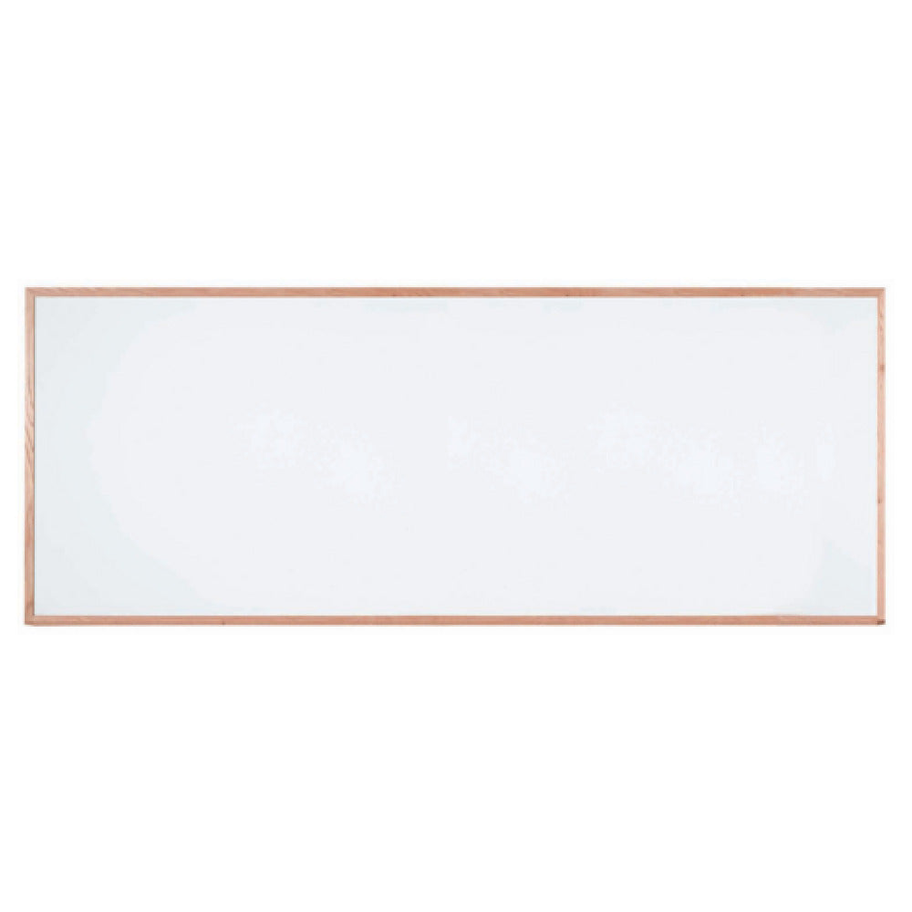 The Aarco WOS48120 White Porcelain Markerboard Wall Mount is a high-quality presentation and organization tool that stands out in various professional and educational settings. Measuring an impressive 120 inches wide by 48 inches high, this markerboard provides ample space for writing, making it ideal for classrooms, conference rooms, and office environments where clear communication is key. The board is crafted from durable white porcelain, ensuring a smooth writing surface that resists ghosting and staining for long-lasting use. Its red oak frame not only adds a touch of elegance but also offers structural reinforcement, enhancing its aesthetic appeal and durability. The steel back ensures stability and strength, allowing the board to be securely mounted on the wall, making it a reliable fixture in any setting. The Aarco WOS48120's large dimensions and quality construction make it especially suitable for environments requiring extensive writing space and frequent updates, such as educational institutions, corporate offices, and creative studios. With its combination of size, material quality, and sturdy construction, this markerboard effectively supports the needs of professionals seeking a dependable and visually appealing solution for their presentation and planning tasks.
