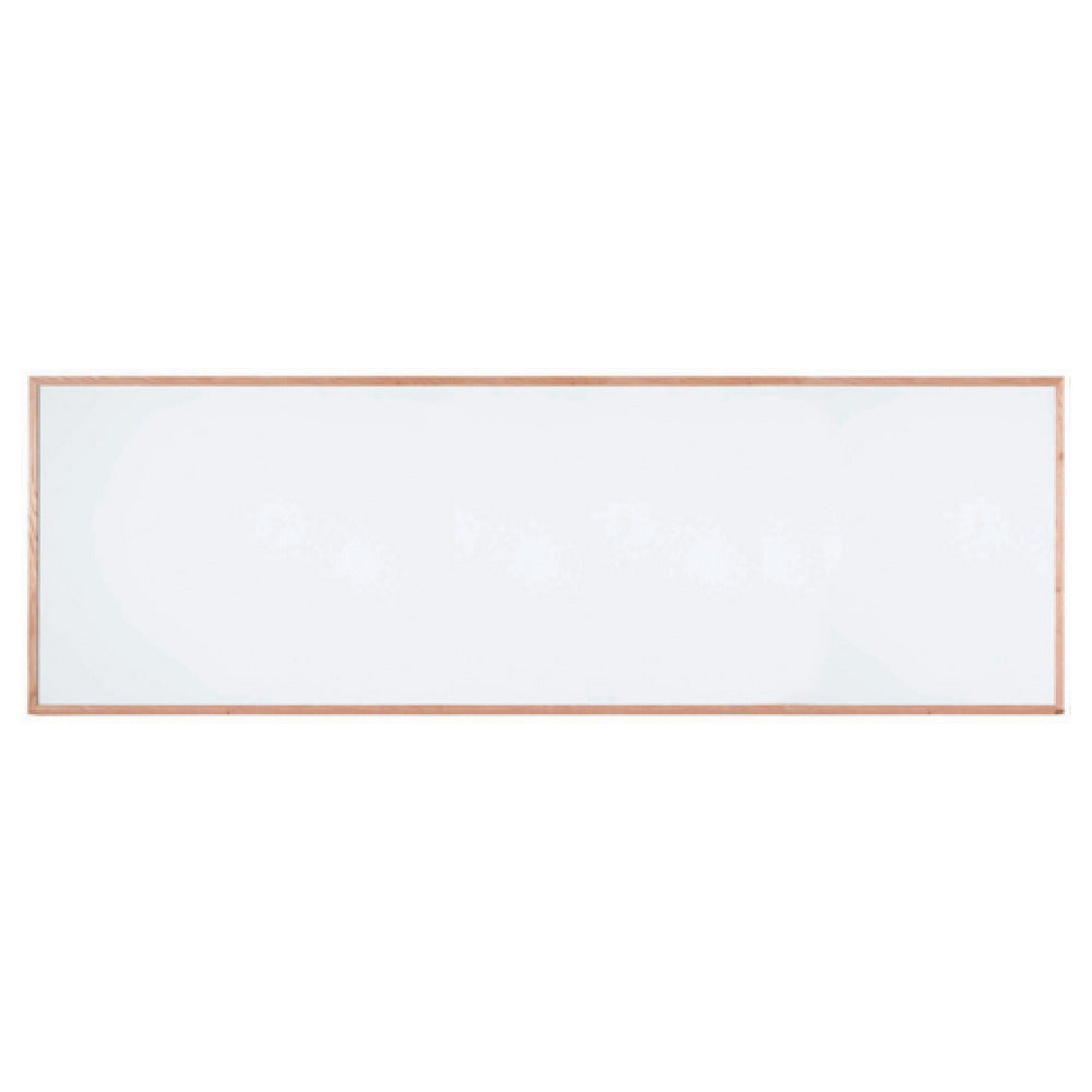 The Aarco WOS48144 White Porcelain Markerboard Wall Mount is an expertly crafted writing surface designed for various professional and educational settings. Precisely measuring at 144 inches in width and 48 inches in height, this markerboard presents an expansive area for clear and organized writing or drawing. The board is framed with an elegant red oak frame, adding a touch of traditional class to its functional design. The high-quality porcelain surface is both durable and easy to clean, providing excellent erasability without ghosting, making it suitable for heavy usage. Backed by a sturdy steel construction, the markerboard ensures stability and longevity, even in high-traffic environments. This product is ideal for conference rooms, classrooms, or any space where effective communication and presentation are crucial. The Aarco WOS48144 is not only a practical tool for educators and business professionals but also an aesthetically pleasing addition to any room decor, combining functionality with style. Its robust build and large surface area accommodate a wide range of communication needs, making it a versatile component of any office or educational institution.
