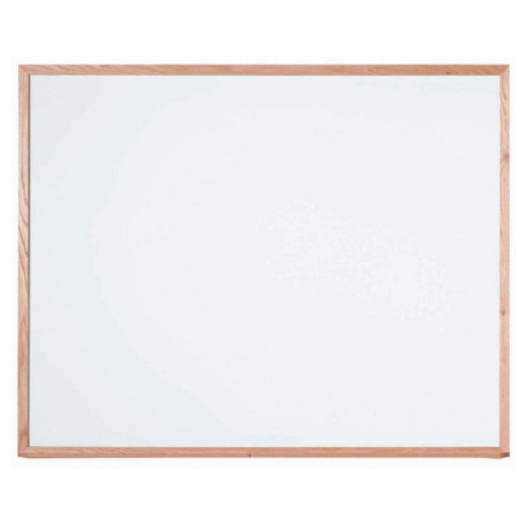The Aarco WOS4860 White Porcelain Markerboard Wall Mount 60"W x 48"H is a versatile and essential tool for educational institutions, corporate environments, and creative spaces. Featuring a generous 60-inch width and 48-inch height, this markerboard provides ample space for presentations, illustrations, and information sharing. Its white porcelain surface offers a smooth, durable, and easy-to-clean writing area that resists stains and ghosting, ensuring long-lasting clarity for frequent use. The markerboard is framed with an elegant red oak, adding a touch of sophistication and blending seamlessly with various interior designs. The sturdy steel back ensures stability and support, making it a reliable choice for high-traffic environments. This wall-mounted unit is designed to maximize space efficiency while maintaining a professional aesthetic. The Aarco WOS4860 is particularly beneficial for educators seeking an effective teaching aid, businesses requiring dynamic collaboration tools, and creative professionals looking to brainstorm ideas visually. Its high-quality construction and elegant design make it an invaluable addition to any setting where communication and organization are paramount.