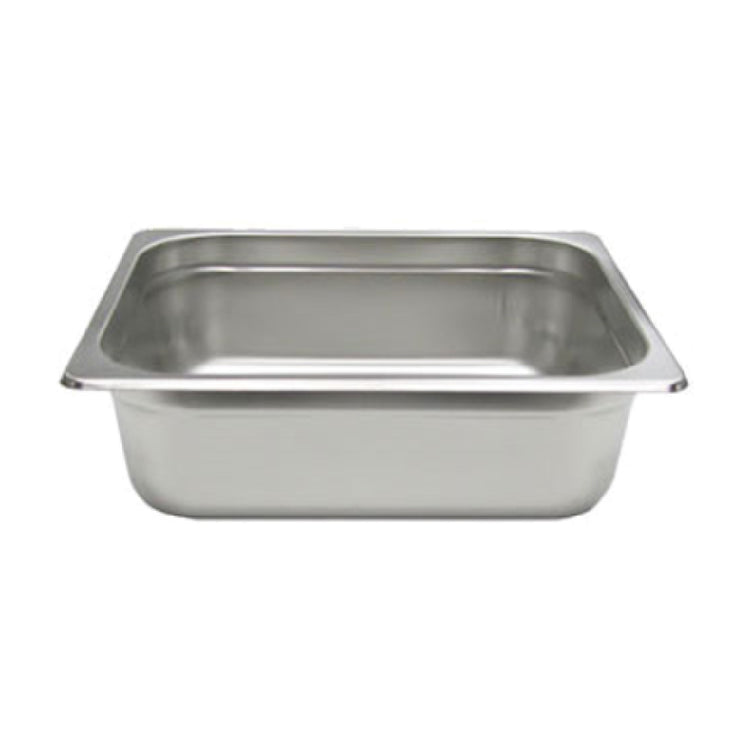 The Admiral Craft 200H4 Nestwell® Steam Table Pan is designed to meet the rigorous demands of professional kitchens. As a 1/2-size pan, it measures 10-3/8 inches in length, 12-3/4 inches in width, and has a depth of 4 inches, making it a highly practical choice for a variety of food service applications. Constructed from standard 24 gauge stainless steel, this steam table pan is noted for its durability and resistance to corrosion, ensuring a long-lasting performance in any commercial kitchen environment. Its anti-jamming feature stands out as a significant advantage, preventing pans from sticking to each other when stacked, thus saving time and effort during busy service periods. This product also meets NSF standards, underscoring its adherence to public health and safety criteria. The Admiral Craft 200H4 is a versatile solution for caterers, buffet service providers, and restaurants, providing reliable performance and efficiency. Its robust construction and thoughtful design make it an essential component for maintaining organized, efficient, and hygienic food service operations.