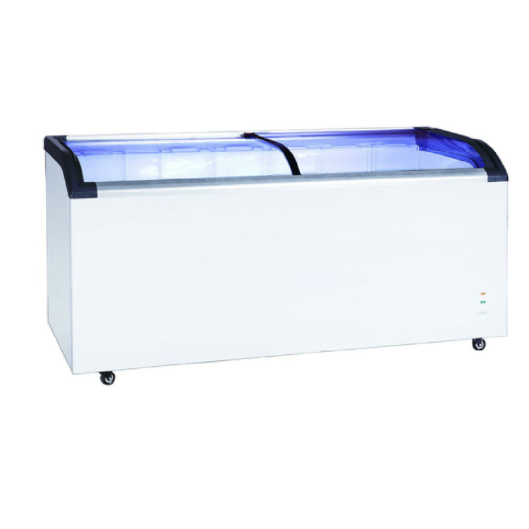 The Admiral Craft BDCF-12-CG Black Diamond Chest Freezer is a versatile refrigeration solution with an overall size of 50"W x 26-4/5"D x 33-1/2"H, designed to meet the needs of various market segments. It boasts a substantial 12.5 cu ft. capacity, making it suitable for both small and large scale food storage applications. The freezer features a curved sliding glass lid, providing easy access and enhanced visibility of stored items. With four wire coated baskets, it facilitates organized storage. The LED interior lighting ensures clear visibility, while the manual temperature control and defrost system offer precise regulation. It operates within a temperature range of -4°F to -10°F, suitable for preserving a wide array of products. The inclusion of indicator lights provides easy monitoring of the unit's status. For added convenience, it has a drain plug and bottom-mounted self-contained refrigeration. The interior is made of white aluminum, while the exterior is crafted from white powder coated steel, ensuring durability. Equipped with four built-in casters, it offers mobility. Utilizing R290 Hydrocarbon refrigerant and running on 115v/60/1-ph with 1.6 amps and an 8' power cord, this unit is cETLus and ETL-Sanitation certified, ensuring compliance with industry standards.