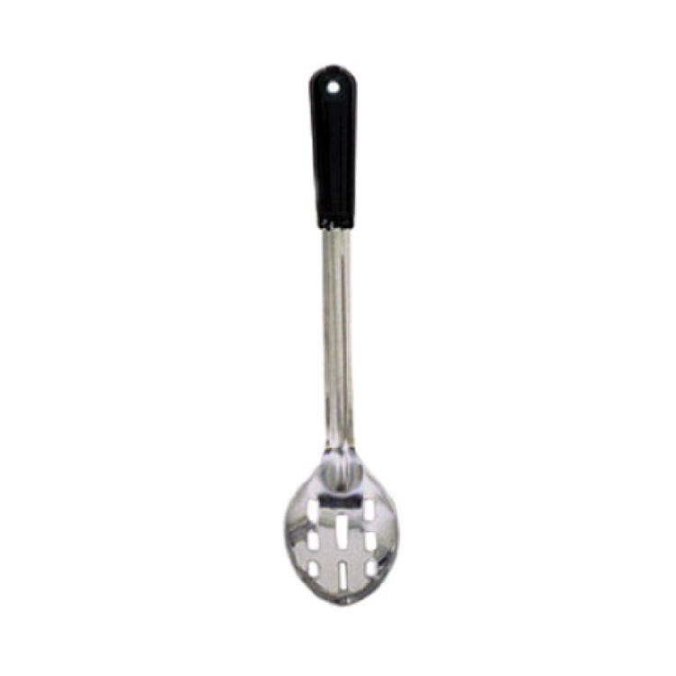The Admiral Craft BHS-15SL Basting Spoon Slotted 15" Long is a meticulously crafted kitchen tool designed to meet the demands of both professional chefs and home cooking enthusiasts. This basting spoon features a substantial 15-inch length, providing the reach necessary for a variety of culinary tasks. Constructed as a one-piece unit, it boasts a sturdy and seamless design that ensures durability and ease of use. The handle is made from Bakelite, offering a comfortable grip and excellent resistance to heat, making it suitable for prolonged use in busy kitchen environments. The spoon's head is expertly slotted, allowing for efficient draining of liquids when serving or preparing food. Additionally, the inclusion of a hanging hole in the design facilitates convenient storage, ensuring the spoon is always within reach. Engineered from heavy stainless steel, the BHS-15SL offers superior strength and resistance to the rigors of frequent use, ensuring it remains a reliable tool over time. This combination of thoughtful design and robust construction makes the Admiral Craft BHS-15SL Basting Spoon an invaluable addition to any kitchen, catering to the needs of culinary professionals and avid home cooks alike who require quality and performance in their cooking utensils.
