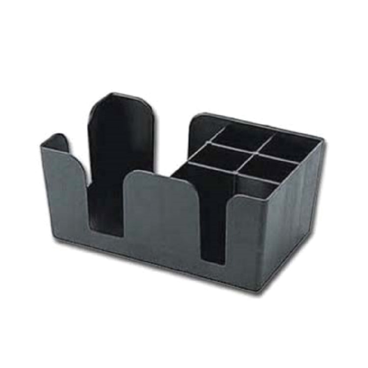 The Admiral Craft BO-1270 Bar Organizer is a compact and efficient solution for maintaining a tidy and organized bar area. With its dimensions of 6 inches by 9 inches by 4 inches high, this bar organizer maximizes space utility without occupying much room, making it an excellent choice for bars of any size. It features six distinct compartments, each designed to hold a variety of bar essentials, from cocktail napkins and straws to small drink garnishes, ensuring that everything is easily accessible and neatly arranged. Constructed from durable plastic in a sleek black finish, this bar organizer not only promises longevity but also blends seamlessly with any bar decor. The Admiral Craft BO-1270 is particularly valuable for busy bartenders and bar owners who prioritize efficiency and organization. Its sturdy construction and thoughtful design cater to both high-volume commercial bars and intimate home setups, making it a versatile addition to any beverage service area. This bar organizer is a testament to functional design paired with aesthetic simplicity, ensuring that your bar remains uncluttered and visually appealing, enhancing both service efficiency and customer experience.