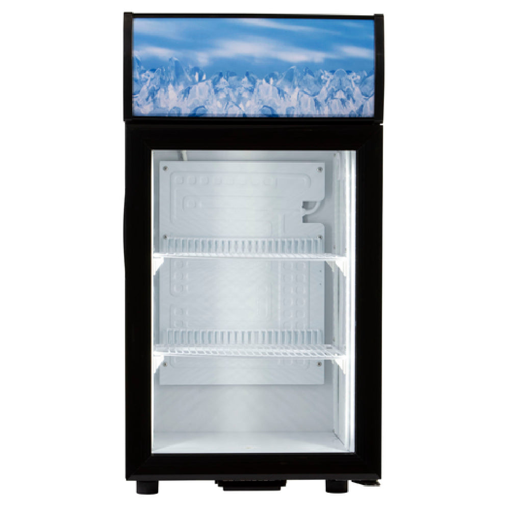 The Admiral Craft CDRF-1D/1.5 Display Refrigerator Countertop Reach-in is a compact and efficient refrigeration solution with a single section and a 1.5 cubic foot capacity. It features a hinged glass door for easy access and visibility, making it ideal for showcasing products in a small footprint. With two adjustable epoxy-coated shelves, this display refrigerator provides versatile storage options for various items. The temperature range of 32°F to 50°F is controlled by a mechanical temperature controller, ensuring consistent cooling performance. This unit is equipped with a manual defrost system and employs a top-mounted self-contained refrigeration system, running on R600a Hydrocarbon refrigerant. The black-coated steel exterior not only enhances durability but also complements various display environments. The refrigerator operates on 110v/60/1-ph electrical requirements and has a power rating of 1/10 HP, drawing 1.6 amps. Designed with energy-efficient LED lighting and a lighted merchandising sign, it effectively highlights the contents inside. Certified by cETLus, this display refrigerator meets stringent safety and performance standards. It is well-suited for small cafes, kiosks, or any retail environment looking for a reliable and aesthetically pleasing refrigeration option to enhance product visibility and maintain freshness.