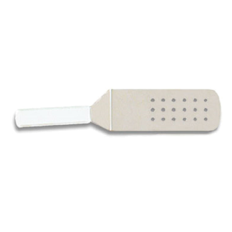 The Admiral Craft CUT-T83PWH Advantage Series™ Turner - Perforated 8" X 3" Blade is a precision-engineered kitchen tool designed to meet the needs of professionals in the culinary industry. Featuring an 8-inch by 3-inch perforated blade, it is tailored for tasks requiring precise flipping and turning, enhancing its utility in professional kitchens. The turner's blade is constructed from high-carbon steel, ensuring durability and resistance to stains while providing a high level of performance. Complementing the robust blade is a polypropylene handle that offers a comfortable grip and is dishwasher safe, enhancing both ease of use and maintenance. This model's compliance with NSF standards underscores its quality and safety, making it a trusted choice for commercial food service environments. Additionally, the product's individual blister packaging ensures it is protected until it reaches your kitchen. The Admiral Craft CUT-T83PWH turner seamlessly integrates into various culinary settings, from bustling restaurant kitchens to catering operations, delivering reliable performance with every use. Its unique combination of durability, ease of cleaning, and thoughtful design makes it an essential tool for chefs and kitchen staff who demand efficiency and quality in their kitchen equipment.