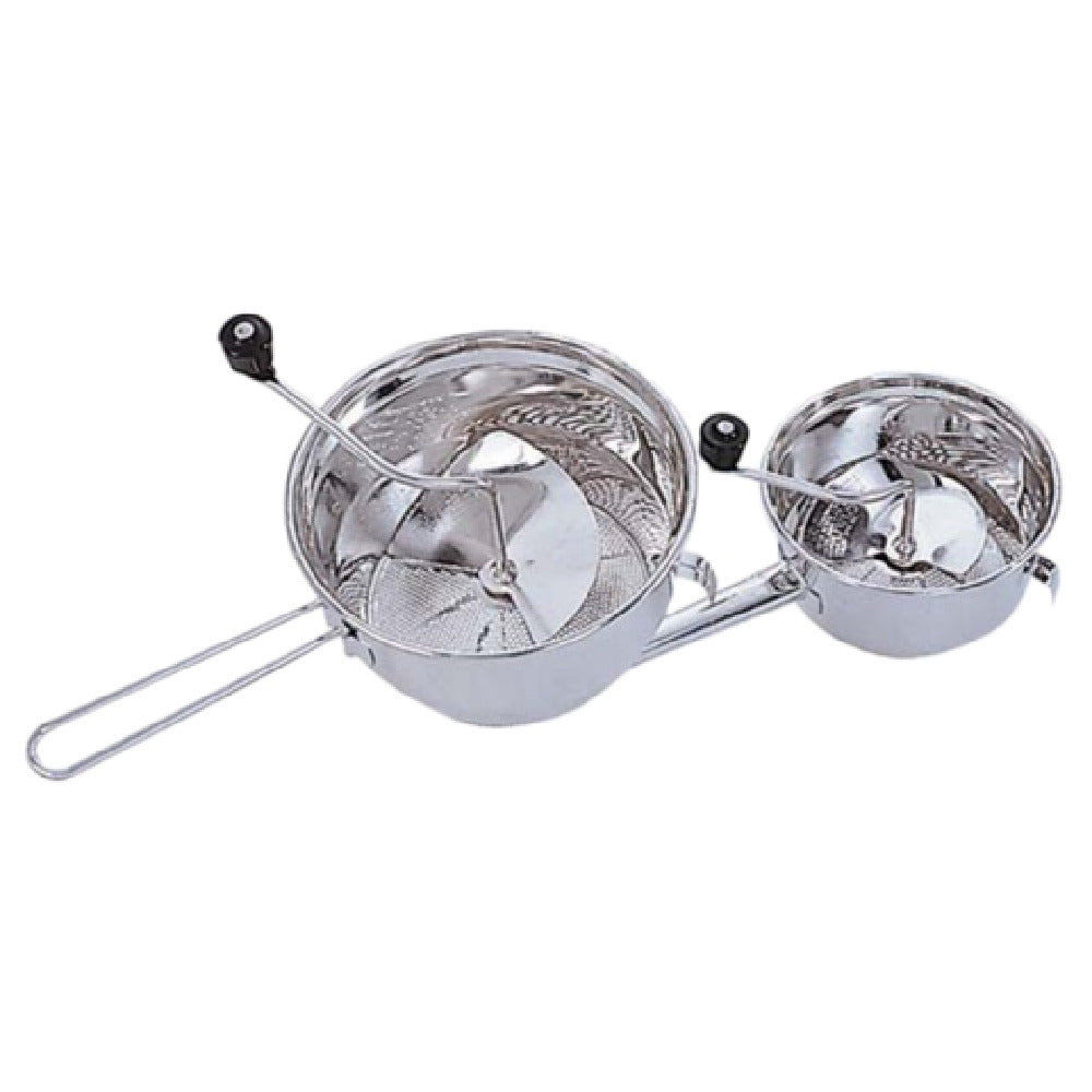 The Admiral Craft FM-20 Foley Food Mill 2 Qt. Manual is a versatile kitchen tool designed for a variety of food preparation tasks. With its 2-quart capacity, this manual food mill is ideal for mashing, straining, ricing, pureeing, and grating a wide range of ingredients. Crafted from durable stainless steel, it offers resilience and longevity, making it a reliable choice for both home cooks and professional chefs. The material also ensures that the food mill is dishwasher safe, facilitating easy cleaning and maintenance. This food mill serves as an essential tool for those in the culinary industry who prioritize efficiency and quality in food preparation. It caters to different market segments by providing a sturdy and efficient means to process food, whether for creating smooth purees, fine riced potatoes, or uniformly grated cheese. The manually operated design allows for precision control, enabling users to achieve the desired texture and consistency in their culinary creations. The Admiral Craft FM-20 Foley Food Mill is a practical addition to any kitchen, combining functionality with ease of use in a sleek, stainless steel package.