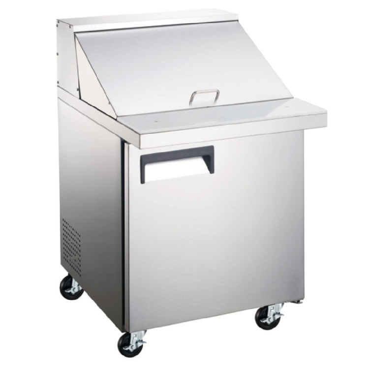 The Admiral Craft GRSLM-1D Grista Refrigerated Mega Top Salad/Sandwich Prep Table is a high-performance unit designed for efficient food preparation in commercial kitchens. With a compact size of 27-1/2"W x 34"D x 46"H, this 1-section prep table offers a 6 cu.ft. capacity, making it suitable for small to medium-sized operations. It features a rear mount self-contained refrigeration system using R290 refrigerant, ensuring environmentally friendly and efficient cooling. The digital temperature control with LED display allows precise management of the 33°F to 41°F temperature range, ensuring food safety. For versatility, it includes one adjustable plastic-coated wire shelf and a robust 8" deep x 3/4" thick polyethylene cutting board. The insulated hinged lid and self-closing door with recessed handle enhance energy efficiency. Constructed with a durable 430 stainless steel exterior and painted aluminum interior, it promises longevity and ease of maintenance. Mobility is facilitated by four casters, two of which are locking. Operating at 115v/60/1-ph with 4.4 amps, it connects via a NEMA 5-15P plug. Certified by cETLus and ETL-Sanitation, the GRSLM-1D is a reliable choice for establishments prioritizing quality and functionality in their food service equipment, complete with included clear plastic food pans.