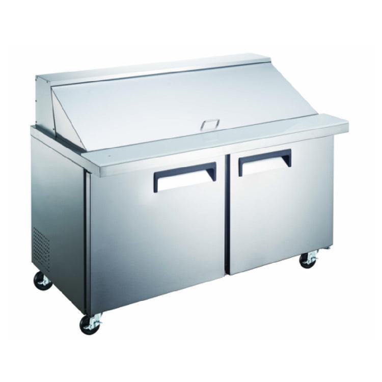 The Admiral Craft GRSLM-2D Grista Refrigerated Mega Top Salad/Sandwich Prep Table is a versatile 2-section unit, ideal for food service operations seeking efficient and space-saving refrigeration solutions. With dimensions of 47"W x 34"D x 46"H, this prep table offers a substantial 12 cu.ft. storage capacity, accommodating a variety of ingredients while maintaining freshness with its rear mount self-contained refrigeration. It features a digital temperature control with an LED display, ensuring precise management within a temperature range of 33° to 41°F. The table includes an insulated hinged lid and an 8" deep x 3/4" thick polyethylene cutting board for seamless food preparation. For flexible storage, it comes equipped with two adjustable plastic-coated wire shelves. The self-closing doors with recessed handles enhance its usability, while the painted aluminum interior and 430 stainless steel exterior ensure durability. The unit is mobile thanks to four 4" casters, two of which are locking for stability. It operates on 115v/60/1-ph with a 1/4 HP compressor, drawing 5.2 amps, and comes with a NEMA 5-15P plug. Additionally, the GRSLM-2D is cETLus and ETL-Sanitation certified, with clear plastic food pans included, making it a practical choice for any commercial kitchen.