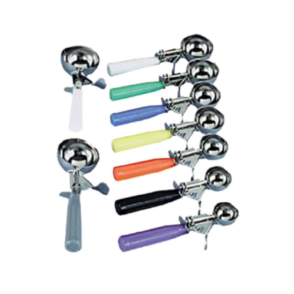The Admiral Craft ICS-24 Ice Cream Disher Size-241-3/4 Oz. Round Bowl is meticulously engineered to meet the demanding requirements of professional food service environments. Featuring a size-24 disher with a capacity of 1-3/4 oz., this tool is ideal for precise portion control, making it a crucial asset for ice cream parlors, catering services, and institutional dining facilities that prioritize consistency and efficiency. The round bowl design ensures smooth and even scooping, while the thumb lever action facilitates effortless release of contents, enhancing speed and productivity in high-pressure settings. Constructed with sanitary sealed technology, the ICS-24 disher promotes hygiene and reduces the risk of food contamination, a critical feature in maintaining stringent food safety standards. Its ribbed plastic handle, available in a striking red color, provides a comfortable and secure grip, minimizing user fatigue during extended periods of use. The Admiral Craft ICS-24 is NSF certified, attesting to its compliance with public health and safety regulations, making it a trusted choice across diverse market segments, from small-scale ice cream vendors to large commercial kitchens. With its blend of practical design and rigorous construction, the ICS-24 is an indispensable tool for professionals seeking reliability and precision in their culinary endeavors.