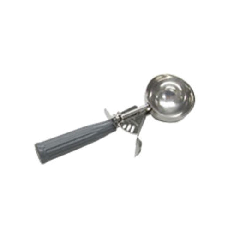 The Admiral Craft ICS-8 Ice Cream Disher Size-84 Oz. Round Bowl is a specialized tool designed for the food service industry, offering precise portion control with its size-8, 4-ounce capacity. Featuring a round bowl and thumb lever action, it facilitates efficient serving with ease and minimal effort. The disher is constructed with a sanitary sealed design, ensuring hygiene standards are upheld in any culinary environment. Its ribbed plastic handle provides a comfortable grip, and the gray color adds a sleek, professional appearance. Additionally, the product is NSF certified, which underscores its adherence to public health and safety requirements. This ice cream disher is an invaluable asset for various segments within the food industry, including ice cream parlors, restaurants, and catering services, where maintaining hygiene and consistency in portion sizes is crucial. The Admiral Craft ICS-8 is engineered for durability and reliability, making it a trusted choice for professionals seeking quality and efficiency in their kitchen tools.