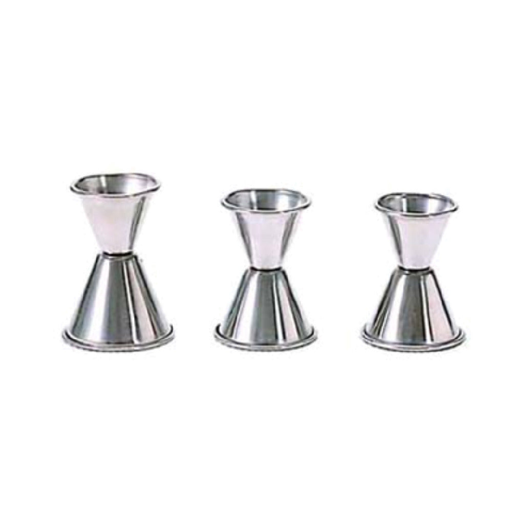 The Admiral Craft JIG-2 Jigger 1 x 1-1/2 oz. Rolled Edge is a precise measuring tool designed for professional bartenders and cocktail enthusiasts. With its dual capacity of 1 ounce and 1-1/2 ounces, this jigger facilitates accurate and efficient mixing for both classic and contemporary cocktails. Crafted from stainless steel, it offers durability and resistance to rust and wear, ensuring long-lasting use in fast-paced bar environments. The satin finish adds a sleek, professional aesthetic, complementing any bar setup. The rolled edge design not only enhances grip and comfort during use but also adds an element of safety, minimizing the risk of spills. This jigger is particularly valuable for establishments that prioritize precision and consistency in their beverage service, such as upscale bars, restaurants, and catering services. Its compact size makes it easy to handle, and it integrates seamlessly into a bartender's toolkit. The Admiral Craft JIG-2 Jigger is an essential tool for those seeking to elevate their cocktail crafting experience with accuracy and style, making it a preferred choice across various segments of the hospitality industry.