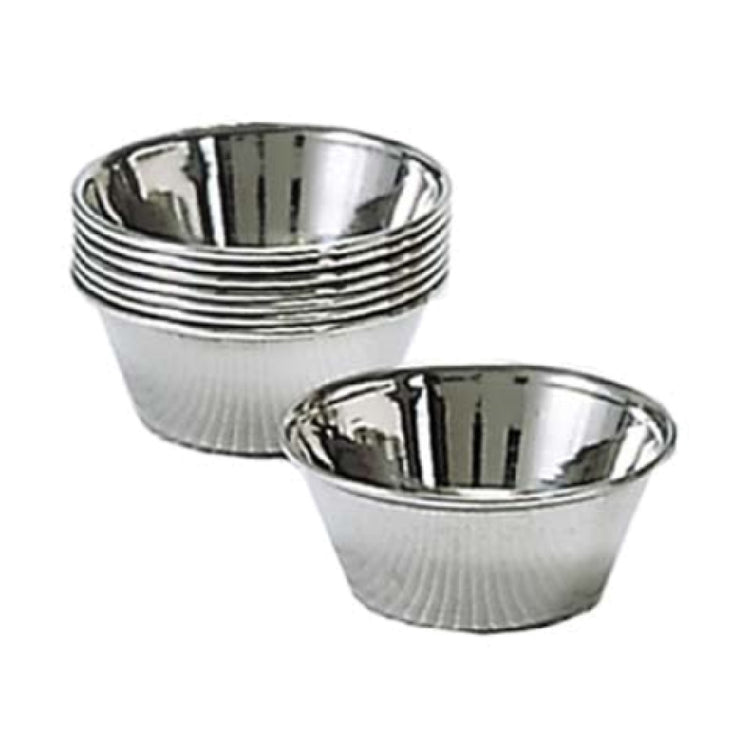 The Admiral Craft OYC-1/PKG Sauce Cup 1-1/2 Oz. Tapered is an essential item for any commercial kitchen, offering a perfect blend of functionality and durability. Each cup is crafted from high-quality stainless steel, ensuring a long-lasting finish that resists stains and corrosion. These sauce cups are thoughtfully designed with a 1-1/2 oz. capacity, making them ideal for serving dips, dressings, or condiments in a precise, portion-controlled manner. The tapered design of the cups not only provides a sleek appearance but also allows them to be easily nestable, saving valuable storage space when not in use. Sold in packages of 12, they cater to high-volume operations and are an economical choice for restaurants, catering services, and other food service establishments. This product is engineered to meet the diverse needs of professionals in the culinary industry by combining practicality with exceptional quality, ensuring that it stands up to the demands of busy environments. The Admiral Craft OYC-1/PKG Sauce Cup is an indispensable tool for chefs and servers who prioritize efficiency, elegance, and hygiene in their service setting, making it a versatile addition to any establishment's tabletop collection.