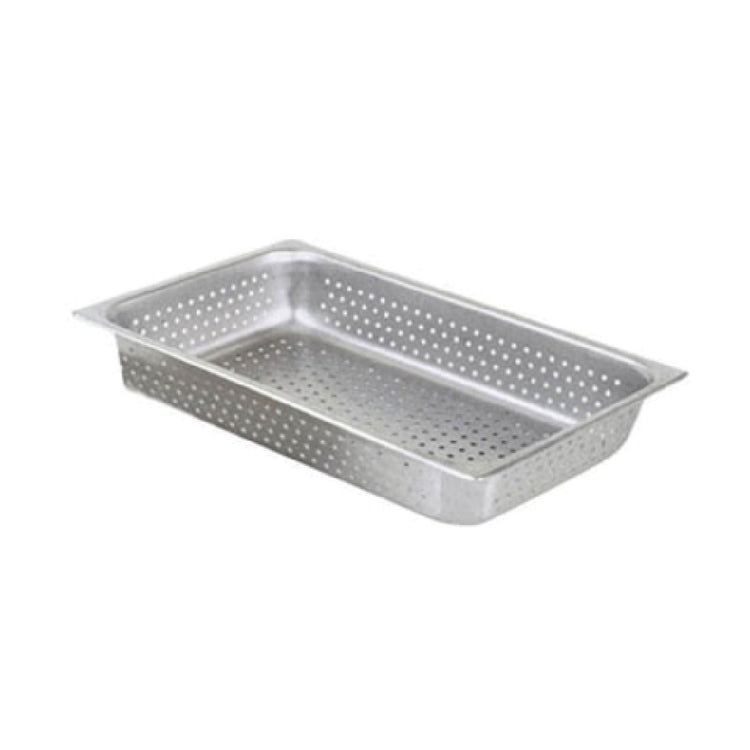 The Admiral Craft PP-200F1 Steam Table Pan Full Size is a meticulously crafted culinary tool, measuring 20-3/4"L x 12-3/4"W x 1-1/4" deep, tailored to meet the high standards of professional kitchens. Made from durable 24-gauge stainless steel, this pan is designed to ensure longevity and withstand the rigors of a bustling food service environment. Its perforated design enhances drainage and steam circulation, making it particularly suited for buffet lines or catering services where maintaining food quality is paramount. The full-size dimension of the pan makes it highly adaptable, fitting seamlessly into standard steam table setups. It is NSF certified, which signifies its compliance with rigorous health and safety standards, providing peace of mind to operators concerned with sanitation. The Admiral Craft PP-200F1 pan serves diverse market segments, from catering operations looking for reliable steam table solutions to restaurants that prioritize efficient and effective food service equipment. Its robust construction and thoughtful design elements ensure that it remains a staple in any food service establishment, offering the right balance of functionality and dependability.