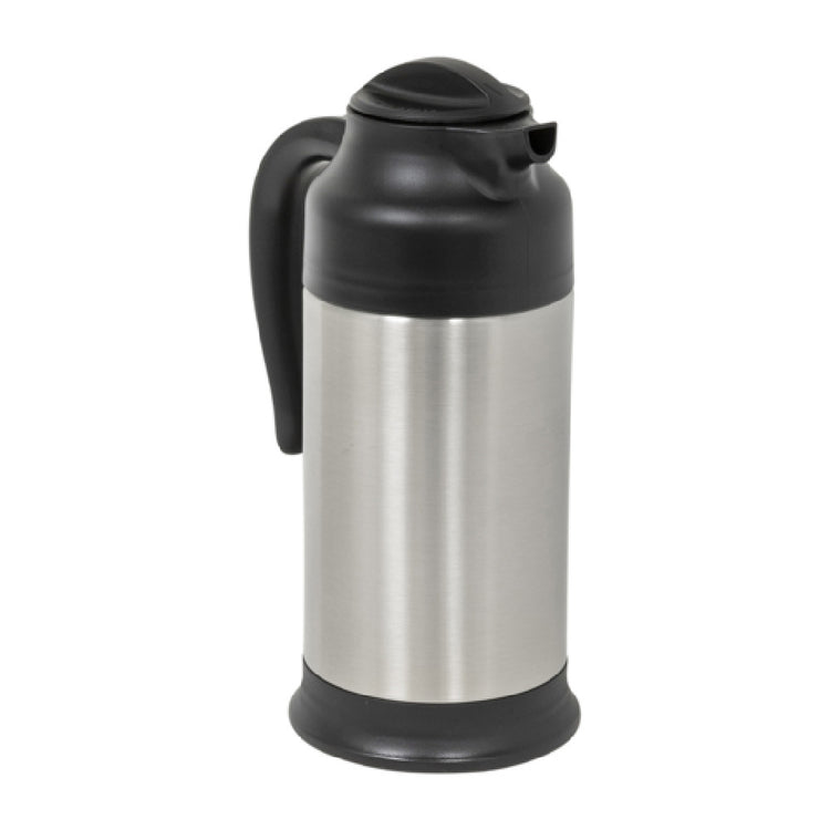The Admiral Craft SLVFE750 Slim Line Vacuum Flask is a versatile beverage container with a capacity of 750 ml, making it a convenient choice for both personal and professional use. This vacuum flask features a push button lid, enhancing ease of use and ensuring secure sealing to maintain the temperature of its contents. The break-resistant construction sets this flask apart in terms of durability, making it suitable for various environments, including outdoor activities and busy kitchens. Designed with a side handle, it offers ergonomic handling and improved portability. The combination of stainless steel and black elements in its design not only adds to its aesthetic appeal but also contributes to its resilience and longevity. Ideal for different segment markets, this vacuum flask serves as an efficient solution for those in the food and beverage industry, catering businesses, or anyone in need of reliable temperature retention for liquids. The Admiral Craft SLVFE750 Slim Line Vacuum Flask exemplifies a blend of practicality and robust design, ensuring it meets the demands of users seeking durability and convenience in their beverage storage solutions.