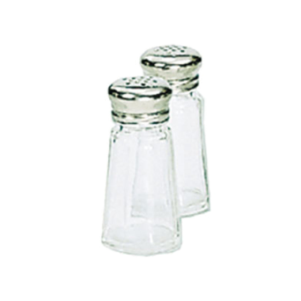 The Admiral Craft SMT-1 Salt/Pepper Shaker is a compact and versatile kitchen accessory measuring 3 inches in height with a capacity of 1 ounce. This shaker is designed with a tapered paneled body that adds a touch of elegance to its appearance, making it suitable for both casual dining environments and high-end culinary establishments. The mushroom top design not only provides a comfortable grip but also ensures ease of use, making this shaker ideal for fast-paced restaurant settings as well as home kitchens. Crafted from high-quality stainless steel and glass, the Admiral Craft SMT-1 Salt/Pepper Shaker boasts durability and a sleek aesthetic, making it an excellent choice for long-term use in any dining setting. The stainless steel construction offers resistance to corrosion and enhances the overall longevity of the product, while the clear glass allows for easy monitoring of contents, ensuring timely refills. This shaker's practical design and robust construction cater to a wide range of market segments within the food service industry, from casual eateries to fine dining establishments, providing a reliable and stylish solution for seasoning needs.