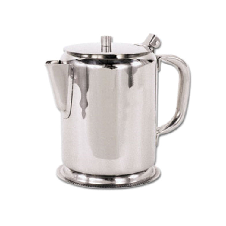 The Admiral Craft STP-32GB Beverage Server 32 Oz. Tubular Hollow Handle is a premium serving solution designed for high-volume beverage service in various hospitality settings. This beverage server boasts a substantial capacity of 32 oz., making it perfect for serving a range of hot or cold drinks efficiently. Key features include a tubular hollow handle, which not only provides a sleek, ergonomic grip for ease of handling but also adds a modern touch to its design. The hinged cover ensures ease of use and helps maintain the temperature of the beverages, enhancing user experience and drink quality. Crafted from high-grade stainless steel with a mirror finish, this beverage server offers durability and a sophisticated appearance that complements any service environment. The gadroon base adds an elegant, decorative element, setting this server apart in aesthetic terms. Ideal for catering to both industrial and casual dining scenarios, the Admiral Craft STP-32GB is a versatile choice that meets the diverse needs of restaurants, hotels, and catering businesses. Its robust construction and stylish design make it a practical and attractive addition to any professional kitchen or service area. This server is an excellent investment for any establishment aiming to deliver both function and form in their beverage service operations.