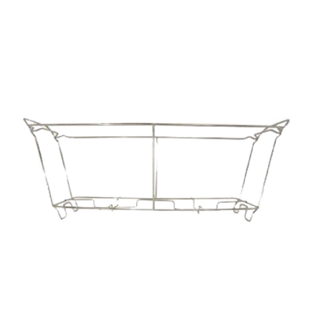 The Admiral Craft WCS-S Chafer Frame is an expertly designed piece of catering equipment, featuring dimensions of 23"L x 12"W x 8"H, specifically fashioned to accommodate 4" deep pans. This chafer frame is an essential addition for professional caterers and buffet-style dining settings, offering a precise fit for standardized deep pans. Constructed from durable wire, the frame is stackable, providing convenient storage and transportation solutions, which is particularly advantageous for large scale events or venues with limited storage space. Additionally, it includes two fuel holder wells, ensuring that catering professionals can maintain optimal serving temperatures for their dishes throughout service. These features collectively underscore the frame’s utility in the foodservice industry, where reliability and ease of use are paramount. Whether utilized in a bustling banquet hall or a more intimate dining setting, the Admiral Craft WCS-S Chafer Frame is a testament to functional design, promising to meet the rigorous demands of the catering sector while enhancing the presentation of culinary offerings. Its straightforward yet efficient design makes it an invaluable tool for maintaining a seamless and professional food service operation.